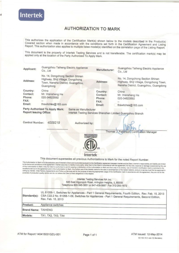 當前位置:網站首頁 » 資質證書 » ETL證書(TH THW TX)
